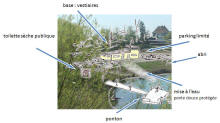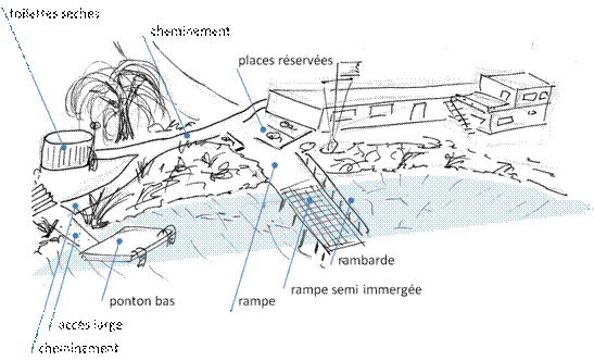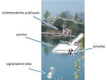 Un local, des abris (pluie et vent), des pontons et passerelles.