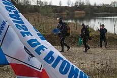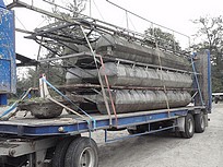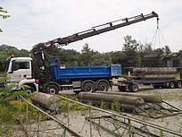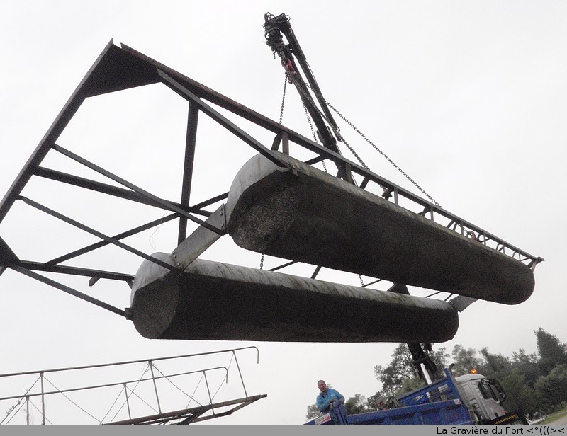 Récupération et transport de pontons sur le site, il reste à les réparer...