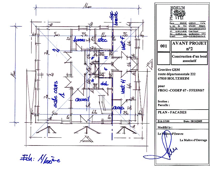 Dans une étude qui rejoint le dossier de subventionnement, et dans une surface compatible avec le budget, accueil, bureau, vestiaires, salles de cours...