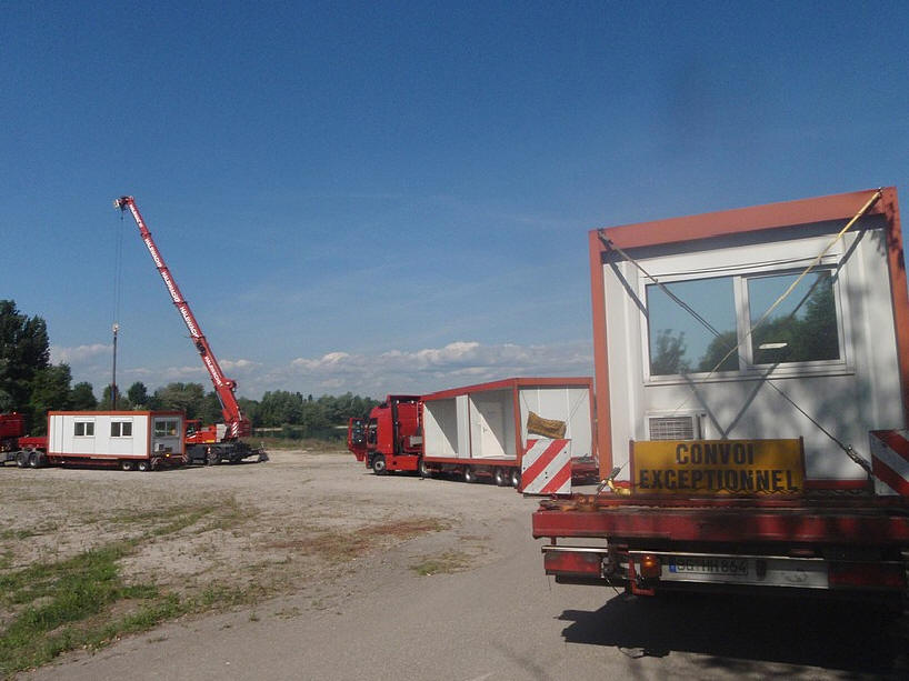 En attendant les budgets pour une construction : achat et installation de container de bureau.